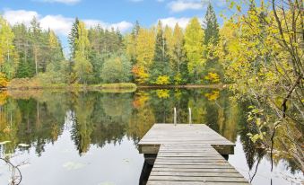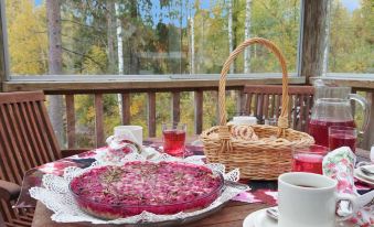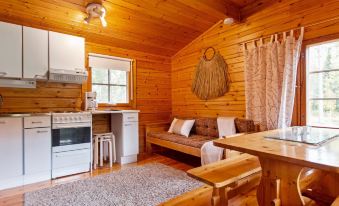 Campfire and charcoal grill (the customer brings the coals), also two barbecue huts in shared use by the cottages in the area.