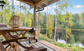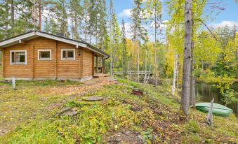 A log cabin on the riverbank of Kärenkoski rapid on the Vaikkojoki. Excellent for stargazing on the glazed terrace.