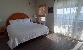 Master Bedroom: New, King size bed, purchased 5/13/2022. One large closet for guests, ceiling fan, window unit air conditioning, large Samsung 55" flat screen TV with DirecTV. This bedroom has an Incredible ocean view with private lanai. and lanai furniture and table. Relax and watch all the water activities during the day, or in the evening gaze at the stars or beautiful Hawaiian sunsets.