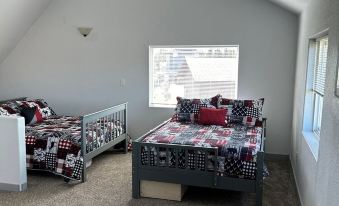 1 queen bed and 2 double beds