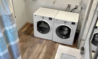 Entering through the front door the stairs are straight ahead and living room and fully stocked kitchen. There is a full bath on the first floor as well as the washer/dryer. Relax in the living room on the couch and enjoy some TV. Dining table is provided, and the kitchen has all the necessary items to enjoy a meal. Upstairs is a vaulted loft that sleeps 6. There is 1 queen and 1 Full bunk bed for a total sleeping availability for 6 people. There is also a half bath and walk in closet on the 2nd floor. Attached carport parking.