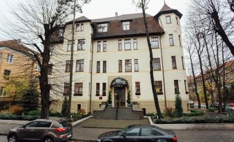 A modern business hotel in the historical part of Kaliningrad – the elite district of Amalienau. It is located in an architectural monument built at the beginning of the XX century. A quiet, green area of the city. Within walking distance are Central Park, the Church of Queen Louise (now a puppet theater) and a zoo, a museum. The main attractions – the Cathedral, the Fishing Village, the fortress towers, the Amber Museum – are about 15 minutes away by car. The distance from the hotel to the airport is 27 km, the railway station is 5 km, the seaport is 6 km, the bus stop is 400 m.
