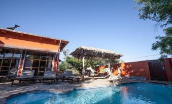 Perhaps a more correct rating would be 3 stars, but based on the very extraordinary kind service and warm welcome, we enjoyed the stay and would be happy to visit again. It´s inconvenient the lodge is approx. 3 km from the tents where you sleep during night and that the place is quite close to a not very nice / interesting town. Also, that guards are present in the camp at night (that they are needed). But additionally on the good side; very fast internet, nice dinner and nice pool area." Perfect stop close to main route to Windhoek