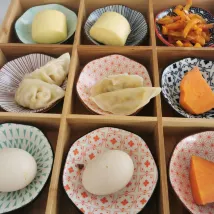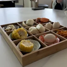 There is a kitchen, and you can order dishes for lunch and dinner, which taste good.