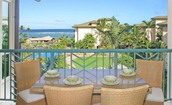 This two bedroom three bath condo offers luxurious penthouse living. Enjoy the central air conditioning or sit on your private lanai and watch a gorgeous Kauaian sunset. The kitchen is equipped to please any gourmet chef. The two private master suites makes Waipouli D 404 the perfect getaway for two couples or enjoy a private retreat for two.