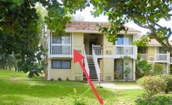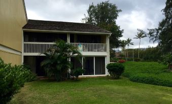 This condo is called 'The 19th Hole' because it is located on the 18th hole of the Fazio Golf Course. It is as close as you can get to the Turtle Bay Hotel from Kuilima condos. There are split system air conditioners in the bedroom, loft bedroom and living room. The beaches are quiet and sandy and you can swim year round at the bay beach (even during pounding high winter surf). There is a comfy California King bed in the bedroom. Main floor bathroom has tub/shower, sink and toilet. Sleeps 4 adults and up to a total of 6 guests including children in beds. The leather double reclining sofa is a perfect place to relax after a fun filled day. The loft has a full bath with shower, toilet and sink, 2 twin beds and 1 queen bed. Guests at Kuilima East have full use of the swimming pools and tennis court and pickle ball court on site. There is free high speed wireless internet access. Condo is fully furnished with all the kitchen amenities, pickle ball equipment and beach gear for your stay.