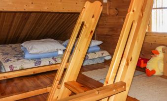 Log chalet 2004, kitchen, bedroom with a double bed, a second bedroom with 2 beds, a loft with 2 mattresses, sauna (electric stove), bathroom, terrace.