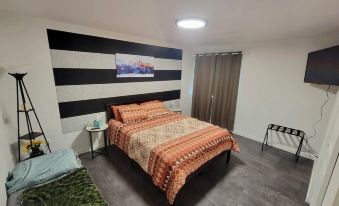 Clean and well appointed rental. The kitchen is stocked with pots, pans, plates and utensils. Coffee pot and folgers coffee also readily available. Comfprtable bed. Large open floor plan. There is even and washer and dryer in the unit which is perfect for those longer stays. In the perfect location!