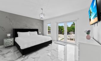 Room 1: Master Bedroom with a King size bed, access to a full private bathroom, Smart TV, 2-night stands, with access to the pool
