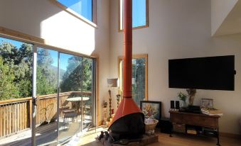 Take it easy at this unique and tranquil getaway. It is lo in the beautiful private Pinon Pines Estates. The Sea Ranch homes Architectural Style & panoramic views of the Greater Frazier Mountains are breathtaking. Surrounded by pine & fruit trees.This open concept home allows you and your guests to enjoy nature while feeling cozy with the free-standing wood stove. the 3 levels layout offers a private and comfortable environment for all.enjoy outdoor activities, Mtn village shopping&restaurants