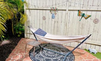 The best part of this cottage is the outdoor space! Enjoy the tropical outdoor living area for soaking up the sun, reading a book in the shade, sipping your morning coffee, connecting with family and friends, or relaxing. The space features: