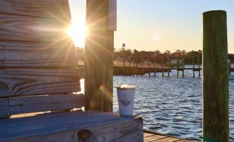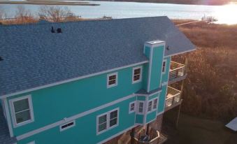 Enjoy sound front views and sunsets over Kitty Hawk Bay! This is a 1 bed 1 bath guest apartment attached to our home with a private entry, private bath, private outside deck and private living space. Newly built in 2017. There is a outside shower available to guests, extra pullout couch, and covered parking underneath our house. Guests have free access to bikes, beach chairs, and kayaks off the dock.