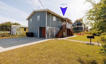 Unit 2 is a renovated second floor unit of a triplex with ideal location in KDH. 4 min bike ride or 10 min walk to beach/sound. Off of Third St which has a stop light w/ push button crosswalk. Restaurants, Target, Wright Brothers Museum, shopping, Food Lion, movie theatre, mini golf within walking distance. Bikes provided. Kitchen is stocked with dishes, glasses, pots/pans etc. Full size appliances, spacious bedrooms, smart TV's and washer/dryer. Retreat, relax and enjoy!