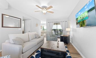 Featuring three bedrooms and two bathrooms, our condo comfortably sleeps up to eight guests. The master bedroom has a luxurious king-sized bed with an en suite bathroom and a walk-in shower to fully refresh after a day in the sun. The two additional bedrooms each feature queen-sized beds, but there is also a queen sofa sleeper in the living area in case additional accommodation is needed (every room features a ceiling fan). The condo is fully remodeled and freshly painted with all new furniture, flooring, and even new blinds to ensure your stay is as clean and comfortable as possible. For entertainment, catch up on your favorite shows with three Amazon Fire stick TVs and one smart TVs (one in each bedroom and in the living space). There are several fantastic restaurants nearby, but the condo is also convenient for home cooking with a fully equipped kitchen, including a microwave, dishwasher, and Keurig coffee maker. Additionally, there is a stackable washer and dryer for your private use.