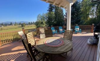 Our winter rates are wonderfully low at $80 a night for three people to stay in one of our fully furnished bedrooms with queen size beds. There are 5 bedrooms available with three shared full bathrooms, so expect other guests to be in the common areas. There is plenty of room to share! If you wish to have the house completely to yourself, please see listing #2895486. Enjoy Sweeping Views of the Pastoral Countryside & Cascade Mountain Range from every corner of Iz’s Ridge - a private, shy 10 acre Estate. Looking out the windows feels like being in a painting! 6 miles from downtown Enumclaw, close to many amenities including the White River Amphitheater and the Muckleshoot Casino. Only one hour from Mount Rainier. For avid skiers, Crystal Mountain and the Summit at Snoqualmie is only an hour away in either direction.