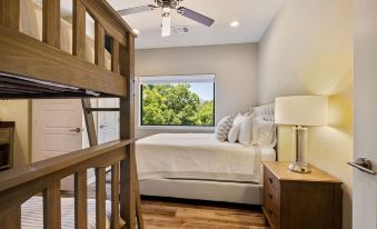 5 bedrooms: 2 bunk beds 1 queen bed and 3 king beds