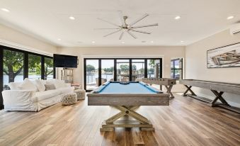 This home was Absolutely fantastic!!! It has everything you need for an amazing vacation on the lake!! The home is so Beautifully appointed and has everything that you need on-site! The game room has sofas, TVs with all the fun games like shuffleboard fuse ball, a pool table and more! The beds are super comfortable and very very clean! The location is simply amazing. The views of the lake are Breathtaking !! This home comes with a boat slip paddle boards and lily pad for the water !! The deck on top of the boathouse is phenomenal and made for great evening gatherings !!Management and ownership was phenomenal and they made it very easy for check-in and check out. Super clean too!!! Not to mention H-E-B and Ace Hardware are literally three minutes from the home, which makes it very convenient !! I highly recommend this home.We can’t wait to come back !!!