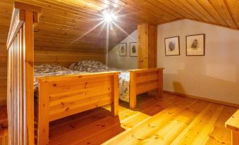 40 km North-East of Kolari, lake Ylläsjärvi 2,5 km, swimming beach 4 km. Log duplex apartment 1989. Livingroom/kitchen, two bedrooms, on with a double bed and one with a bunk bed, loft (9 m²) with 2 beds. Electric sauna, shower, separate toilet. Open porch. Homely duplex apartment located in the Ylläsjärvi village Palovaara area. Location ideal for winter sports. Hiking routes nearby. Hotel Ylläsrinne is the closest hotel. No pets allowed. Prices include final cleaning, bed linen available for rent.
