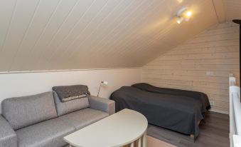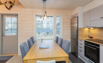 The apartment also includes a bathroom, a sauna, and a WC for added convenience. The loft has three beds, a private WC, and a washing machine, making the apartment practical even for larger groups. This spacious and stylish home offers everything you need for an unforgettable holiday experience in the scenic fell landscape. A workstation in another room allows you to work remotely. Additional information: Final cleaning included in the price. Wi-Fi = 5G. The condominium is non-smoking, so smoking is not allowed even in the yard.