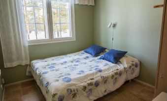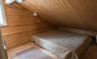 40 km north of Kolari, lake Äkäslompolo 1,5 km, swimming beach 2,5 km. A cottage, built 2003. Livingroom/kitchen, two bedrooms each with two separate beds, loft (40 m², low room height, sloping ceilings) with three alcoves separated by curtains (one alcove has four beds and two alcoves each have two beds), electric sauna, washing room, separate toilet. Heated ski maintenance room with equipment. There is also wifi.