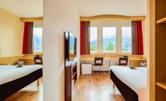 ibis Luzern-Kriens hotel is located at the foot of Mount Pilatus. With S-Bahn you can be in the center of Lucerne in 5 minutes and in the middle of snow-capped mountains on Lake Lucerne. The hotel is ideal for a city trip or a longer holiday. There are many restaurants, trade fair, Swissporarena and motorway access nearby. The hotel has a 24-hour bar with snack service, free WiFi and a paid indoor car park.