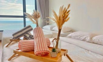The homestay was beautiful, and the moment we opened the balcony, we were greeted with a stunning sea view. We arrived in the afternoon, and the tide was low at that time. We saw some tourists walking along the beach, so we joined them for a stroll. On the next day, just before checking out, we noticed that the tide had come in, and we even saw fishing boats heading out to sea. We were very satisfied with our stay.
