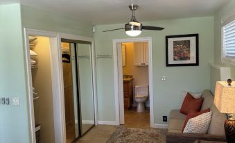 This 2-bedroom cottage is perfectly situated at 2200-2400 ft above sea level, but close to town and all of upcountry’s activities. Nestled in a tranquil setting of a small organically tended fruit orchard, this unit features 2 king beds, a cozy living room with a sofa bed, and bathroom with a bidet and a walk-in shower. With amenities like heating, cooling, SmartTV, WiFi, fully stocked kitchen, washer and dryer, your stay here will be pleasant and worry-free. A great place to call homebase while you're away exploring all the fun activities upcountry Maui has to offer!About pets:Pets allowed: dogs less than 50 lbs per pet (limit one pet total).About checkOut:Check out before 1:00 PM.About children:Children allowed: ages 0-17.About checkIn:Check in after 3:30 PM.About smoking:Smoking is not permitted.About minBookingAge:Minimum age to rent: 21.About events:No events allowed.