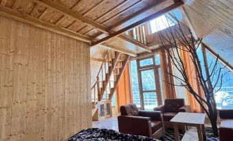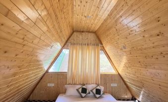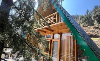 Experience a unique stay in our A-frame treehouse in Jibhi, Himachal Pradesh. A majestic cedar tree grows right through the balcony! This cozy wooden duplex comfortably sleeps 4 and offers both convenient road access and peaceful seclusion on our private land.About pets:Pets allowed: dogs and cats less than 20 lbs per pet (limit 2 pets total).About checkOut:Check out before 11:00 AM.About children:Children allowed: ages 0-17.About checkIn:Check in after 12:00 PM.About smoking:Smoking allowed: in designated areas.About minBookingAge:Minimum age to rent: 18.About events:Events allowed: birthday parties.Maximum event attendees: 10.