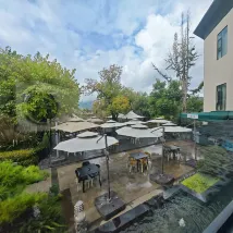 The hotel is conveniently located very close to Ethnic Village, offering a peaceful retreat amidst the hustle and bustle. It boasts a beautiful, thoughtfully designed garden with a lovely ambiance. The hotel restaurant is situated right next to this garden, which also features a small artificial lake, though I didn't spot any black swans. Upon arrival, the entrance leads to the parking lot, and the lobby is located on the second floor. Overall, the hotel felt very quiet and clean, meeting five-star hotel standards. However, the in-room facilities were a little disappointing: there was no refrigerator, and the bathroom lacked a proper shower curb/water barrier, causing water to easily spill out. The night light in the room was a bit too bright; I suggest it be adjusted. The restaurant's prices were reasonable, and the food was both delicious and elegantly prepared.