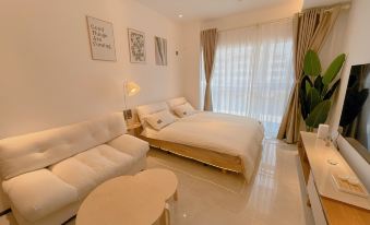 City Light Luxury Double Bed Room With Smart Voice Control AC, 70-inch Large Screen TV, Fridge, And Washing Machine