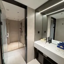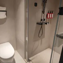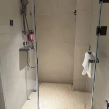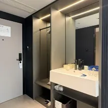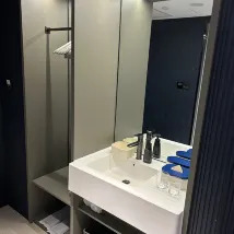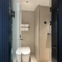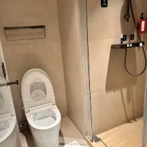 The facilities are comprehensive; although the room wasn't particularly spacious, it had everything necessary. Rooms facing the residential area are exceptionally quiet at night. Complimentary tea and snacks are provided. The shower stall is roomy with excellent water pressure and drainage, and the toiletries were very pleasant to use. While the toilet featured smart flushing, I was slightly disappointed it didn't include a bidet function.