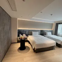 The room was excellent, really clean and well-maintained. The front desk staff were all incredibly welcoming and helpful. What truly stood out was the breakfast buffet; it was incredibly exquisite and clearly prepared with great care. They even gifted us flower pastries upon check-out, which was such a thoughtful touch!