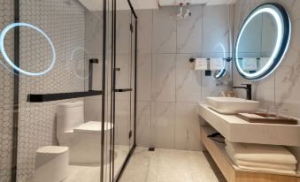 房間不錯空間大 有藍牙可以連接音樂 還有暖氣 前台服務態度也比較好,環境整體比較乾淨,空間很大,很舒適體驗感還是非常強的馬桶是智能馬桶上廁所熱熱的,很暖心,好評好評,下次還來住