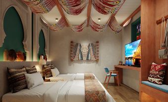 The Kujune Buzhiguiyin Homestay, nestled in Kuqa City, Xinjiang, is a serene abode that harmoniously blends traditional culture with modern comfort. Located in the bustling yet peaceful Resitan Street, it boasts convenient transportation while remaining secluded from the hustle and bustle. The design meticulously intertwines the unique regional characteristics of Kuqa with contemporary aesthetics, creating an ambiance that is both quaint and stylish.