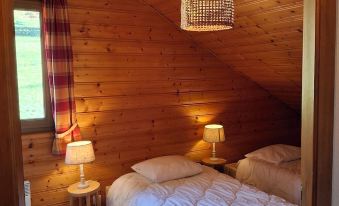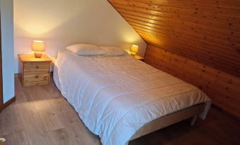 Spacious 100m2 chalet with 8 sleeping places in 4 bedrooms, 2 bathrooms and 2 separate toilets. The accommodation is on a private fenced site and allows children to play safely on a large plot of 10 ares. Outdoor games (swing gantry; ..) are reserved for them. The ponds are fenced and therefore secure. The chalet includes an annex that can accommodate cars or motorcycles, and various equipment, as well as private parking. For your comfort and to enjoy the garden, deckchairs are available.