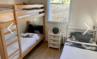 3 bedrooms: 1 bunk bed 1 single bed and 2 double beds