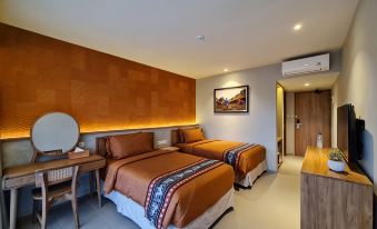 Very clean and spacious room and bathroom, and friendly staff. Well located for airport - can walk but got car arranged my hotel (50k idr). 15 mins walk to centre of town. Breakfast was okay - fresh omelette on second visit. No lift but staff offer to carry bags up and down.