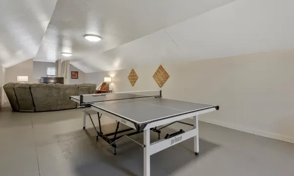 •Large detached garage with rec room, ping-pong table, and smart TV on second floor