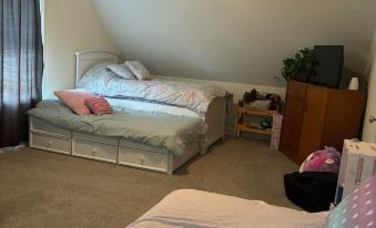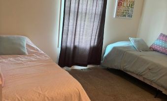 3 bedrooms: 4 single beds 1 queen bed and 1 double bed