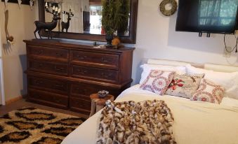 Absolutely perfect spot , close proximity to downtown , markets , hiking trails around the lake and around town. Really enjoyed the large deck for morning coffee and afternoon crafts and dinner . Bed was comfortable, coffee pot, microwave, fridge with freezer etc. Beautiful views, so peaceful . Host was so easy to communicate with and even offered us a late check out to sleep in . 5 stars,