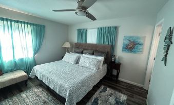 The home is located in a quiet cul-de-sac with absolutely no through traffic. Great for your peace, relaxation and safety of your children. This home was recently totally remodeled and is FULLY furnished for your vacation! Large 2,100 square ft home with 3 bedrooms for 6 persons. As stated above, 3 more persons can stay in the Cabana for a very reasonable additional fee! I charge the same nightly fee if you have 7, 8 or 9 persons. I reimburse extra fees for the 8th and 9th person. Master has a large King bed. Second bedroom with a Queen and third bedroom with 2 twins. Two bathrooms. The master has a walk-in shower. Massive open area with kitchen, dining room and living room combined for plenty of room to spread out. Large washer and dryer in house.