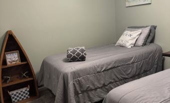 3 bedrooms: 2 single beds 1 queen bed and 1 king bed
