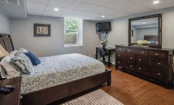 We can sleep up to 4 in our walkout basement, using a queen bed in the bedroom, and air mattresses or sofa in living room.