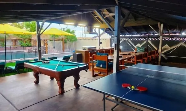 The ultimate choice for Business Owners' Vacations & Corporate Retreats! Now MASSIVE at 5,250 sqft by connecting 2 houses WHO HAVE IT ALL, featuring 10 bedrooms & 6 bathrooms, 2 professional massage chairs and a jacuzzi (available Dec 1). Nestled in a HALF-ACRE backyard with a game room, large golf court, billiards, air hockey, ping pong, pickleball & basketball court.