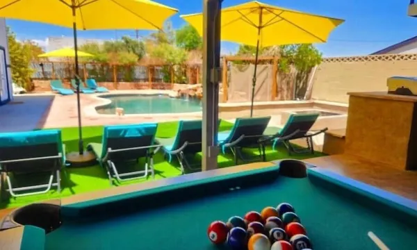 Enjoy a FREE 8h daily heated pool at 90ยฐF โ a Vegas MUST! Only 10 mins from the Strip.