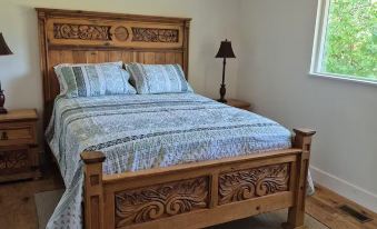 Relax in two large living areas, cook meals in the well-stocked kitchen and wake up to the sound of chickens roaming freely in the backyard. Guests are welcome to pick fresh produce in season and can even schedule a private tour to meet the animals and help with feeding.