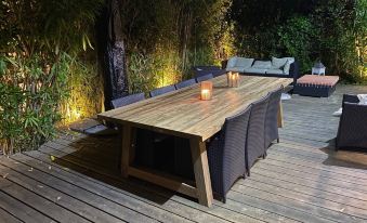 This is a convenient location in the heart of the oyster-farming village, at the foot of the Cap Ferret lighthouse, 100 m from the bay, and a short distance from the ocean paddle boats, the market square, and the shops. This archaic, fully renovated, charming villa features a 170-sq.m, tiled surface area and two duckboard terraces.