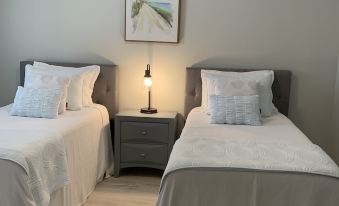 The second/guest bedroom includes 2 twin beds and a smart tv; perfect for your overnight guests !  The second full sized bathroom includes a shower and tub combo.  Additional living spaces include the well appointed and clean kitchen with multiple dining areas including a 6 top dining set, 4 bar stools at the counter height kitchen counter and an outside seating area and bistro set under the covered and screened lanai!  The condo also includes a stackable washer and dryer set for your full use during your stay.