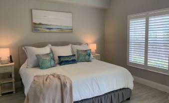 The main bedroom of the condo includes a King bed with an en suite bathroom and large walk in closet and smart tv with cable. The bedroom is full of natural light with lanai access.