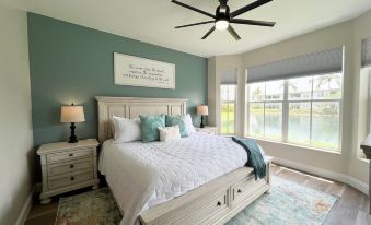 Our kitchen is fully equipped with a coffee maker, Keurig, cooking utensils, pots, pans, a Ninja air fryer, toaster, blender, baking sheets, mixing bowls, wine glasses, martini glasses, BBQ utensils, you name it! Prepare meals with friends and family while enjoying the gorgeous view of the water. We have open cabinets making storing you food easy and convenient. We have a welcome manual in the kitchen with helpful information about the property along with recommendations for local things to do, but we are always available by phone should you need anything.